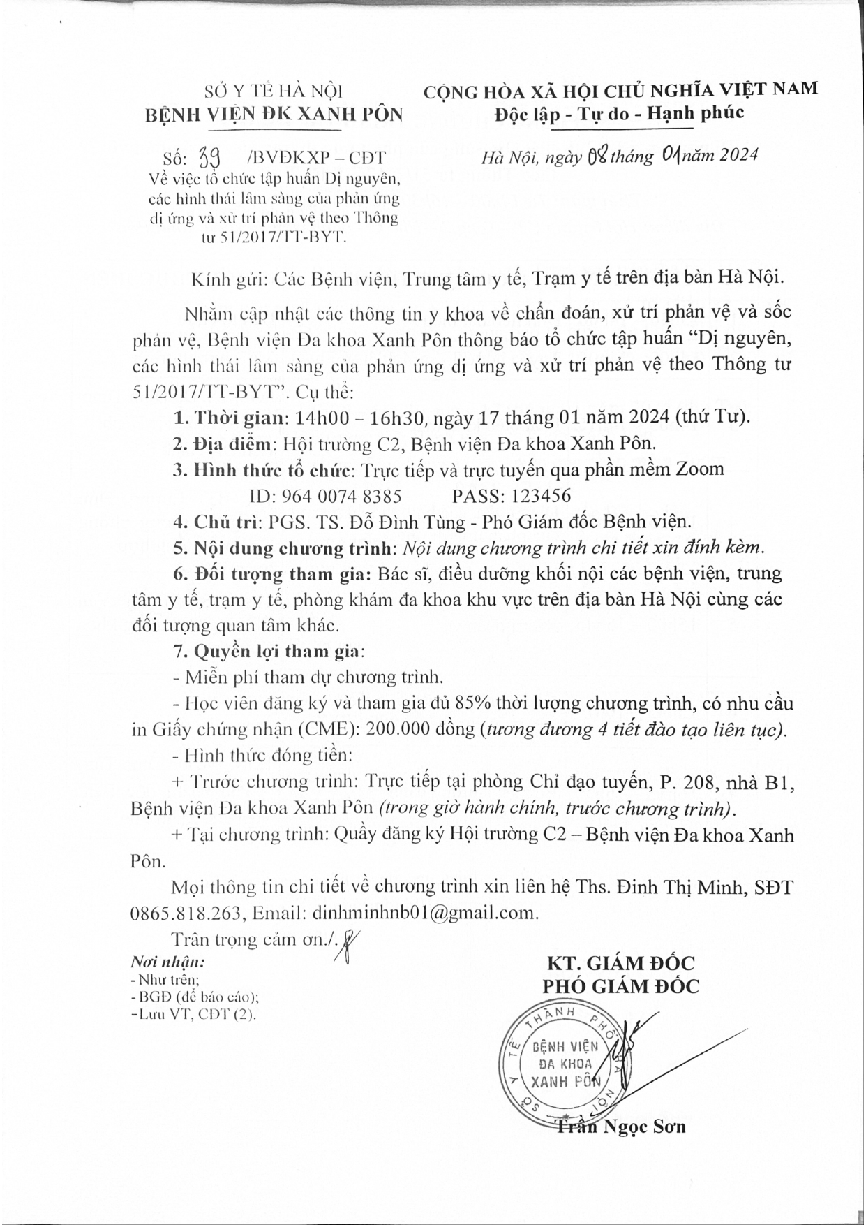Thông bảo tuyển dụng bệnh viện thanh trì