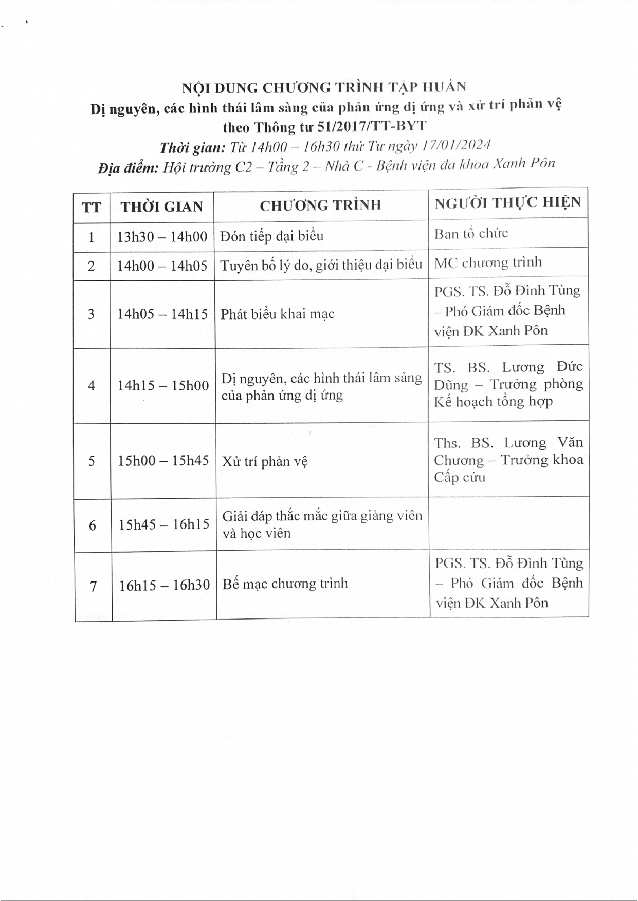 Tập huấn dị nguyện các hình thái lâm sàng của phản ứng dị ứng